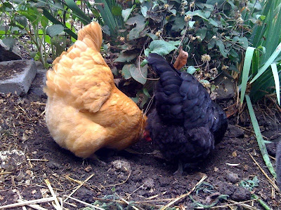 I'm not sure there's anything better than eating eggs within a few hours of being laid (I heard major chicken honking around 8 a.m., so the first egg was probably laid then). We gave the ladies a peach and let them free range for a bit as a reward for their hard work. They enjoy free-ranging, as you can see: